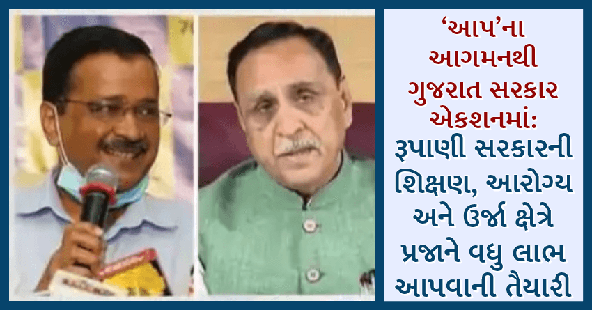 ‘આપ’ના આગમનથી ગુજરાત સરકાર એકશનમાં: રૂપાણી સરકારની શિક્ષણ, આરોગ્ય અને ઉર્જા ક્ષેત્રે પ્રજાને વધુ લાભ આપવાની તૈયારી