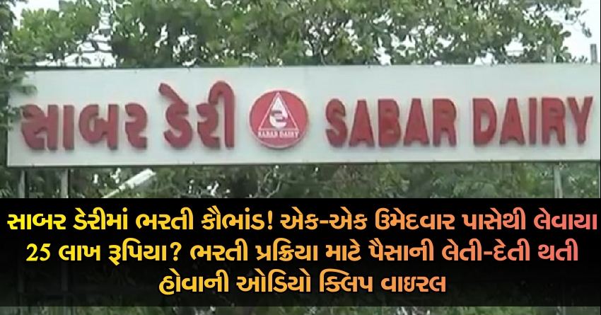 સાબર ડેરીમાં ભરતી કૌભાંડ! એક-એક ઉમેદવાર પાસેથી લેવાયા 25 લાખ રૂપિયા? ભરતી પ્રક્રિયા માટે પૈસાની લેતી-દેતી થતી હોવાની ઓડિયો ક્લિપ વાઇરલ