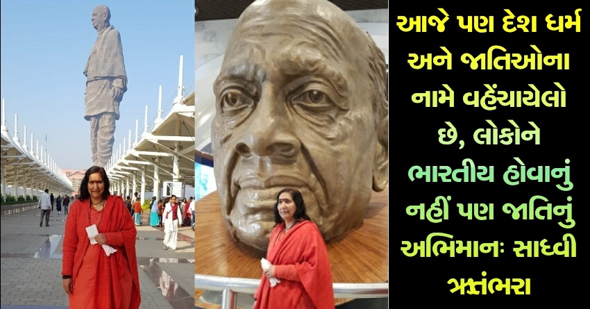 આજે પણ દેશ ધર્મ અને જાતિઓના નામે વહેંચાયેલો છે, લોકોને ભારતીય હોવાનું નહીં પણ જાતિનું અભિમાનઃ સાધ્વી ઋતંભરા