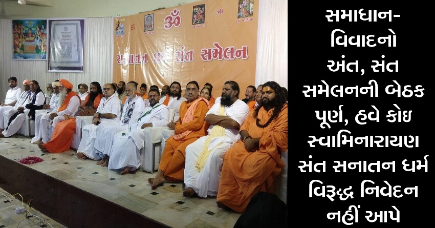 સમાધાન- વિવાદનો અંત, સંત સમેલનની બેઠક પૂર્ણ, હવે કોઇ સ્વામિનારાયણ સંત સનાતન ધર્મ વિરૂદ્ધ નિવેદન નહીં આપે