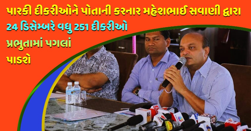 પારકી દીકરીઓને પોતાની કરનાર મહેશભાઈ સવાણી દ્વારા 24 ડિસેમ્બરે વધુ 251 દીકરીઓ પ્રભુતામાં પગલાં પાડશે