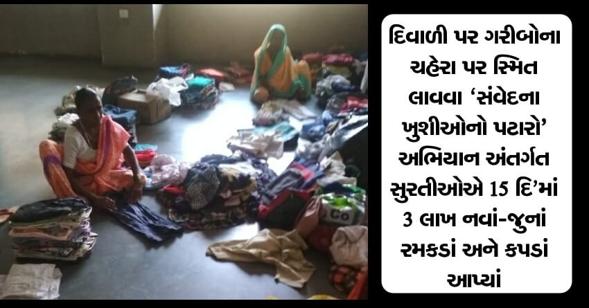 દિવાળી પર ગરીબોના ચહેરા પર સ્મિત લાવવા ‘સંવેદના ખુશીઓનો પટારો’ અભિયાન અંતર્ગત સુરતીઓએ 15 દિ’માં 3 લાખ નવાં-જુનાં રમકડાં અને કપડાં આપ્યાં