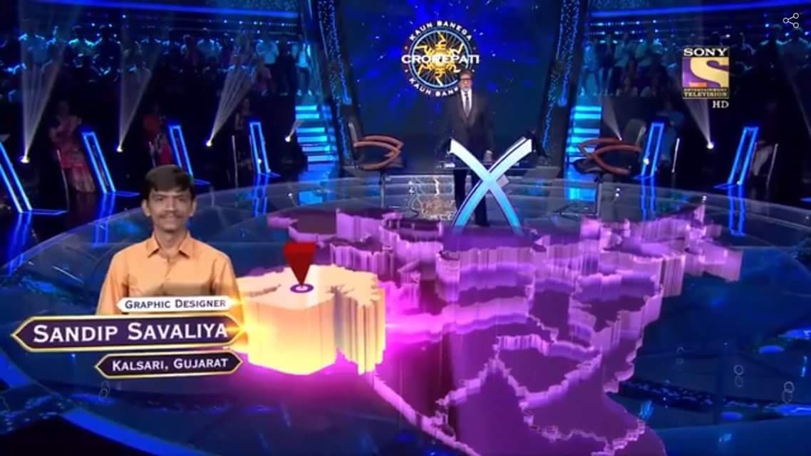 અમિતાભ બચ્ચનના રિયાલિટી શો ‘કૌન બનેગા કરોડપતિ’માં બુધવારે ગુજરાતી સંદિપ સાવલિયા હૉટ સીટ પર જોવા મળ્યો હતો. તેણે 25 લાખ રૂપિયા જીતી ગેમ શો છોડ્યો હતો. સંદિપ ગ્રાફિક ડિઝાઈનર બનવા માગતો હતો પરંતુ તેના પિતા ઈચ્છતા હતા કે તે હિરા ઘસવાનાના વ્યવસાય સાથે જોડાયેલો રહે. જોકે તેણે પોતાનું સ્વપ્ન પૂર્ણ કરવા હારી માની નહીં. તેણે ઘણી સારી રીતે સવાલોના જવાબ આપી 25 લાખ રૂપિયા જીત્યા હતા. આ સમયે તેણે તમામ લાઈફ લાઈનનો ઉપયોગ કરી લીધો હતો. તેને 50 લાખ અંગે પ્રશ્ન કરવામાં આવ્યો હતો કે, ચિત્રસેન અને વૃષસેનના પિતાનું નામ શું હતું. તેનો સાચો જવાબ કર્ણ હતું. જોકે સંદિપને સાચા જવાબની ખબર નહોતી. તેથી તેણે રમત છોડવાનો નિર્ણય કર્યો હતો.