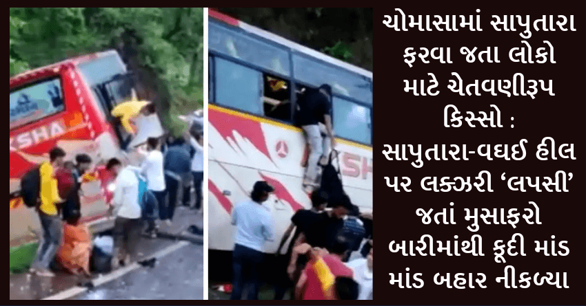 ચોમાસામાં સાપુતારા ફરવા જતા લોકો માટે ચેતવણીરૂપ કિસ્સો: સાપુતારા-વઘઈ હીલ પર લક્ઝરી ‘લપસી’ જતાં મુસાફરો બારીમાંથી કૂદી માંડ માંડ બહાર નીકળ્યા