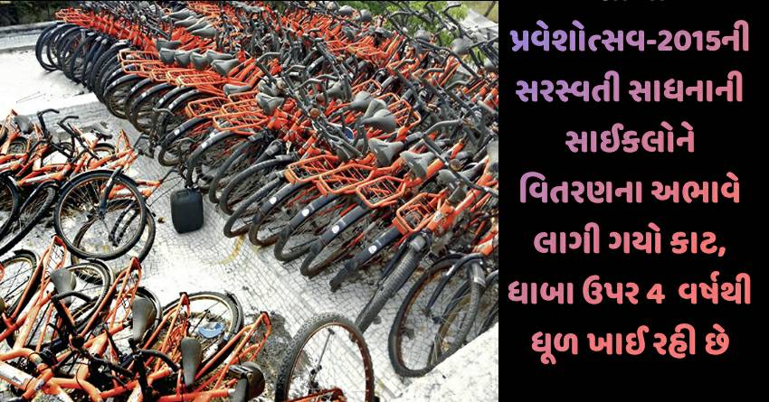 શાળા પ્રવેશોત્સવ-2015ની સરસ્વતી સાધનાની સાઈકલોને વિતરણના અભાવે લાગી ગયો કાટ, ધાબા ઉપર 4 વર્ષથી ધૂળ ખાઈ રહી છે
