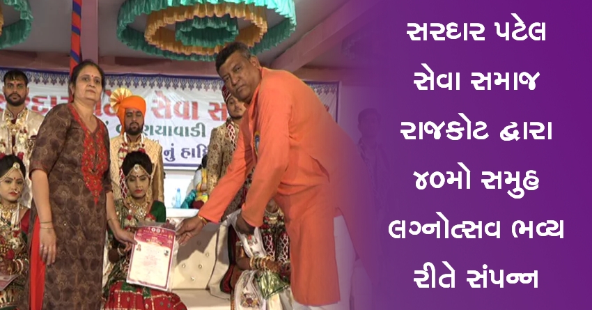 સરદાર પટેલ સેવા સમાજ રાજકોટ દ્વારા ૪૦મો સમુહ લગ્નોત્સવ ભવ્ય રીતે સંપન્ન