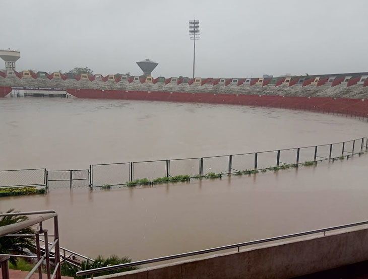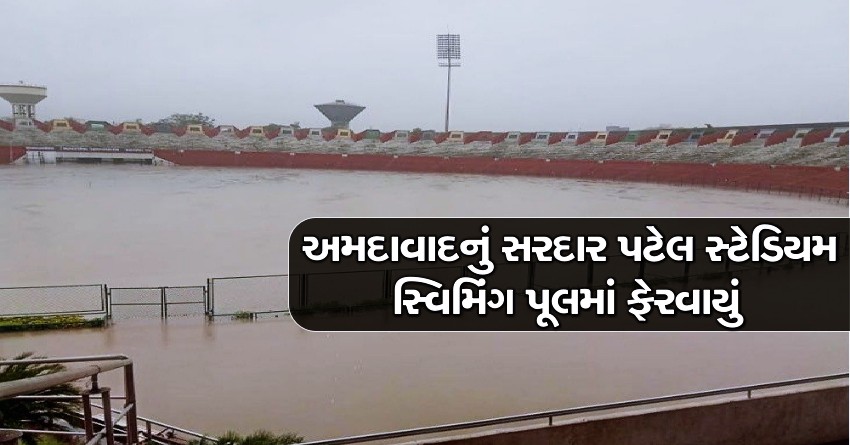 ભારે વરસાદના પગલે અમદાવાદનું સરદાર પટેલ સ્ટેડિયમ સ્વિમિંગ પૂલમાં ફેરવાયું