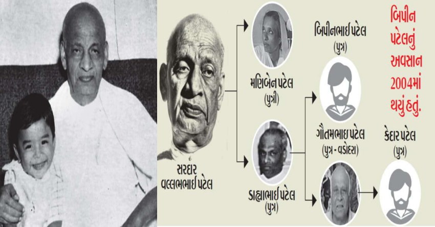 સ્વતંત્ર ભારતના ઘડવૈયા અને સૌથી શક્તિશાળી વ્યક્તિએ પોતાના પરિવારજનોને રાજકારણથી દૂર રહેવાની સલાહ આપી હતી. એટલું જ નહીં તેમના પરિવારની આજે ત્રીજી પેઢી પણ આ સલાહને અચૂકપણે માની રહી છે. રાજકારણથી તો જોજનો દૂર રહે છે. સરદાર વલ્લભભાઇ પટેલના પુત્ર ડાહ્યાભાઇ હતા. તેમના બે પુત્રો બિપીન અને ગૌતમ પટેલ હતા. જે પૈકીના ગૌતમભાઇ પટેલ (ઉ.વ.78) વડોદરામાં રેસકોર્સ વિસ્તારની એક સોસાયટીના એપાર્ટમેન્ટમાં રહે છે. હાલમાં તેઓ અમેરિકામાં તેમના પુત્ર કેદાર પાસે જતા રહ્યાં છે. જ્યારે બિપીનભાઇનું અવસાન જાન્યુઆરી, 2004માં થયું હતું.