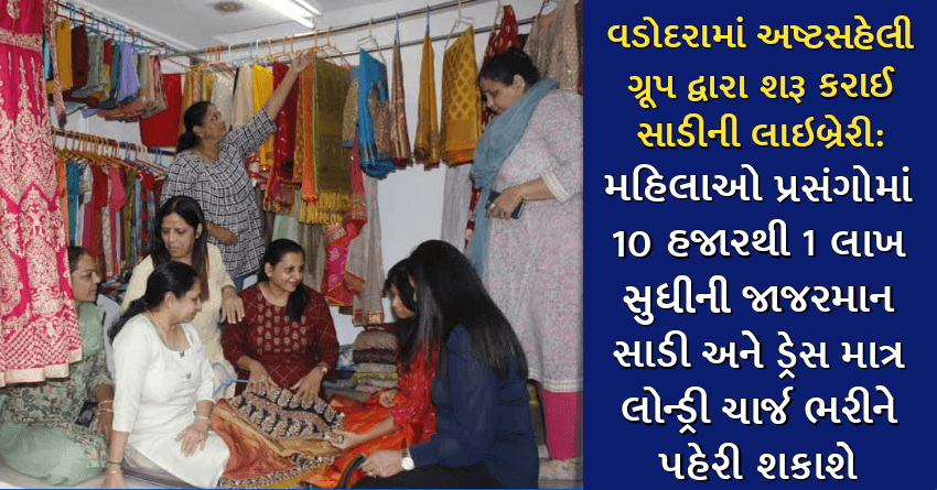 વડોદરામાં અષ્ટસહેલી ગ્રૂપ દ્વારા શરૂ કરાઈ સાડીની લાઇબ્રેરી: મહિલાઓ પ્રસંગોમાં 10 હજારથી 1 લાખ સુધીની જાજરમાન સાડી અને ડ્રેસ માત્ર લોન્ડ્રી ચાર્જ ભરીને પહેરી શકાશે