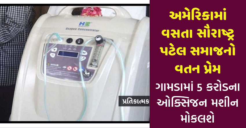 અમેરિકામાં વસતા સૌરાષ્ટ્ર પટેલ સમાજનો વતન પ્રેમ, ગામડામાં 5 કરોડના ઓક્સિજન મશીન મોકલશે
