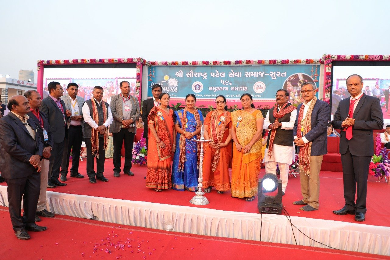 છેલ્લાં 35 વર્ષોથી સુરતમાં સૌરાષ્ટ્ર પટેલ સેવા સમાજ સમૂહ લગ્નના માધ્યમથી સમાજના મધ્યમ વર્ગના પરિવારો માટે આર્થિક સામાજિક રીતે ખુબ મોટું કામ કરી રહ્યું છે. ત્રણ યુગલોથી શરૂ કરીને એક સ્થળે 261 યુગલોના સમુહલગ્નનું આયોજન કર્યું હતું. સૌરાષ્ટ્ર પટેલ સેવા સમાજના પ્રમુખ કાનજીભાઇ ભાલાળાએ જણાવ્યું હતું કે, સમૂહ લગ્નનો હેતુ માત્ર ખર્ચ બચાવવું એટલું જ નહીં. તેના દ્વારા સમાજમાં અનેકવિધ પરિવર્તન લાવવા. સમાજને નવી દિશા આપવી અને સમાજની વિશિષ્ઠ પ્રતિભાઓને ઓળખીને તેને યોગ્ય સન્માન આપવું.