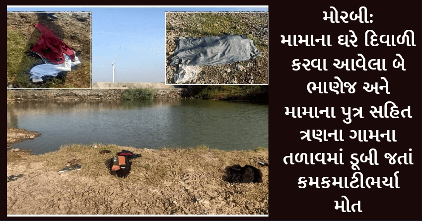 મોરબી: મામાના ઘરે દિવાળી કરવા આવેલા બે ભાણેજ અને મામાના પુત્ર સહિત ત્રણના ગામના તળાવમાં ડૂબી જતાં કમકમાટીભર્યા મોત