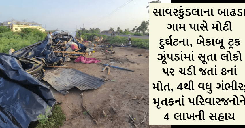 સાવરકુંડલાના બાઢડા ગામ પાસે મોટી દુર્ઘટના, બેકાબૂ ટ્રક ઝૂંપડાંમાં સૂતા લોકો પર ચડી જતાં 8નાં મોત, 4થી વધુ ગંભીર; મૃતકનાં પરિવારજનોને 4 લાખની સહાય