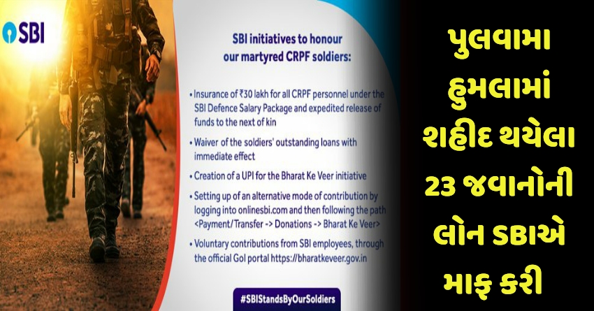 પુલવામા હુમલામાં શહીદ થયેલા 23 જવાનોની લોન SBIએ માફ કરી