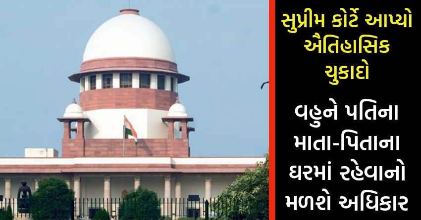 સુપ્રીમ કોર્ટે આપ્યો ઐતિહાસિક ચુકાદો, વહુને પતિના માતા-પિતાના ઘરમાં રહેવાનો મળશે અધિકાર