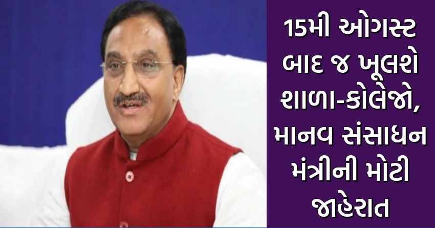 15મી ઓગસ્ટ બાદ જ ખૂલશે શાળા-કોલેજો, માનવ સંસાધન મંત્રીની મોટી જાહેરાત