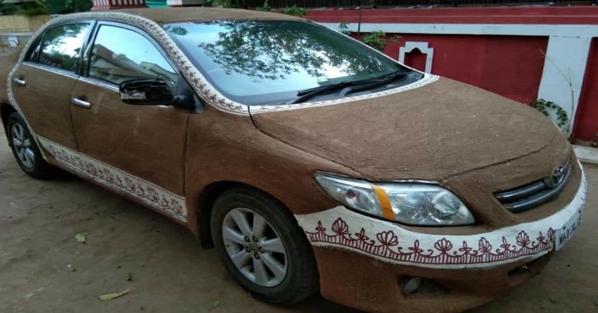 અમદાવાદ માં રહેતા મુંબઈ થી શિફ્ટ થયેલા શ્રીમતી સેજલબેન શાહ નામની મહિલાએ તેમની આ અનોખી ટોયોટા કારનો ફોટો ફેસબુકમાં પોસ્ટ કર્યો હતો. જેમાં કારના ગ્લાસ સિવાય બાકીના બધા ભાગ પર ગાયના છાણનું લીપણ કરેલું છે. રૂપેશ ગૌરાંગ દાસે આ ફોટો શેર કરીને સોશિયલ મીડિયા પર લખ્યું છે કે, મેં અત્યાર સુધી ગાયનાં છાણનો આ પ્રકારનો ઉપયોગ ક્યારેય નથી જોયો. આ ફોટો અમદાવાદનો છે, જ્યાં 45 ડિગ્રી ગરમીના ટેમ્પરેચરથી પોતાની કારને બચાવવા માટે મિસિસ સેજલ શાહે તેની પર ગાયનાં છાણનું પ્લાસ્ટર કરી દીધું છે. ખૂબ જ અદ્દભૂત ઠંડકનો પ્રયોગ!