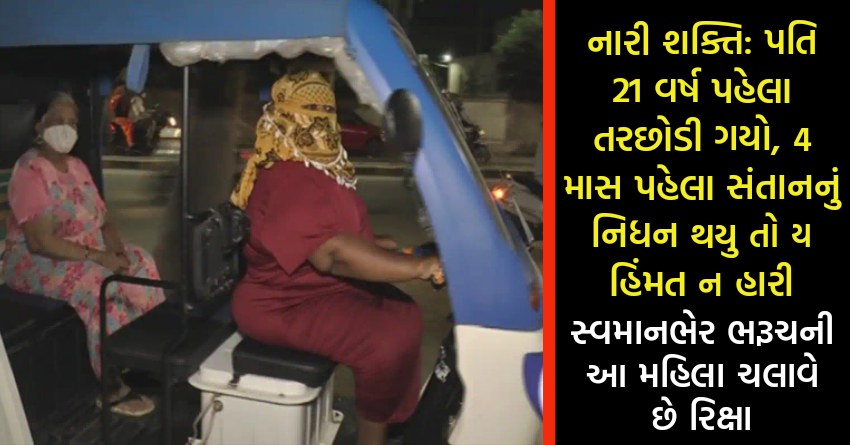 નારી શક્તિ: પતિ 21 વર્ષ પહેલા તરછોડી ગયો, 4 માસ પહેલા સંતાનનું નિધન થયુ તો ય હિંમત ન હારી, સ્વમાનભેર ભરૂચની આ મહિલા ચલાવે છે રિક્ષા