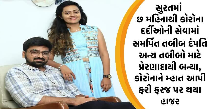 સુરતમાં છ મહિનાથી કોરોના દર્દીઓની સેવામાં સમર્પિત તબીબ દંપતિ અન્ય તબીબો માટે પ્રેરણાદાયી બન્યા, કોરોનાને મ્હાત આપી ફરી ફરજ પર થયા હાજર