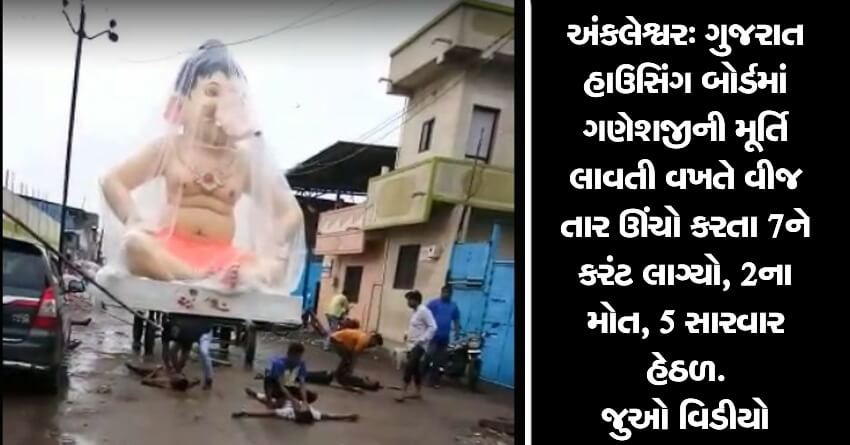 અંકલેશ્વર: ગુજરાત હાઉસિંગ બોર્ડમાં ગણેશજીની મૂર્તિ લાવતી વખતે વીજ તાર ઊંચો કરતા 7ને કરંટ લાગ્યો, 2ના મોત, 5 સારવાર હેઠળ…જુઓ વિડીયો