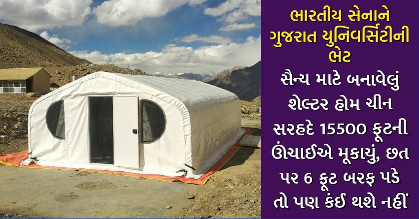 ભારતીય સેનાને ગુજરાત યુનિવર્સિટીની ભેટ: સૈન્ય માટે બનાવેલું શેલ્ટર હોમ ચીન સરહદે 15500 ફૂટની ઊંચાઈએ મૂકાયું, છત પર 6 ફૂટ બરફ પડે તો પણ કંઈ થશે નહીં