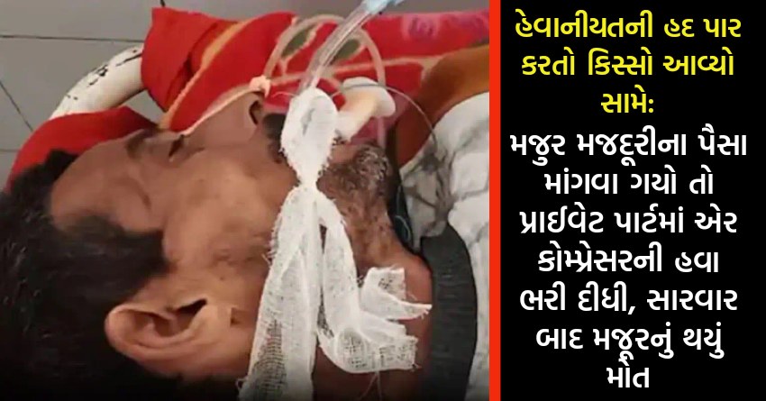 હેવાનીયતની હદ પાર કરતો કિસ્સો આવ્યો સામે: મજુર મજદૂરીના પૈસા માંગવા ગયો તો પ્રાઈવેટ પાર્ટમાં એર કોમ્પ્રેસરની હવા ભરી દીધી, સારવાર બાદ મજૂરનું થયું મોત