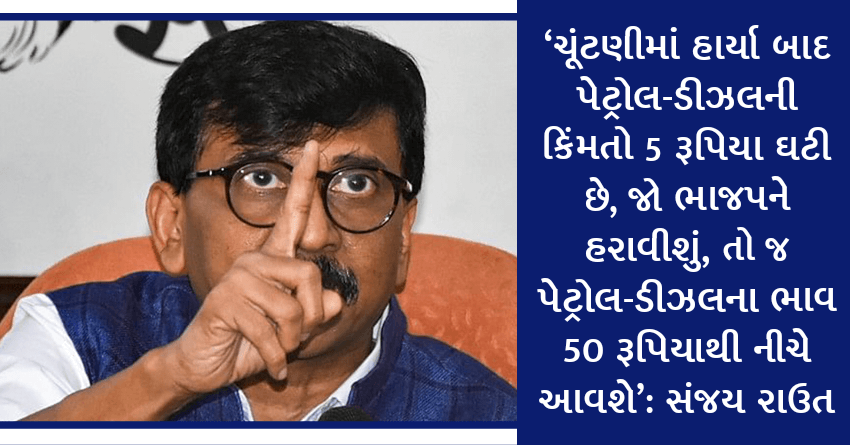 ‘ચૂંટણીમાં હાર્યા બાદ પેટ્રોલ-ડીઝલની કિંમતો 5 રૂપિયા ઘટી છે, જો ભાજપને હરાવીશું, તો જ પેટ્રોલ-ડીઝલના ભાવ 50 રૂપિયાથી નીચે આવશે’: સંજય રાઉત