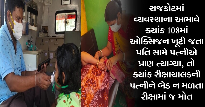 રાજકોટમાં વ્યવસ્થાના અભાવે ક્યાંક 108માં ઓક્સિજન ખૂટી જતા પતિ સામે પત્નીએ પ્રાણ ત્યાગ્યા, તો ક્યાંક રીક્ષાચાલકની પત્નીને બેડ ન મળતા રીક્ષામાં જ મોત