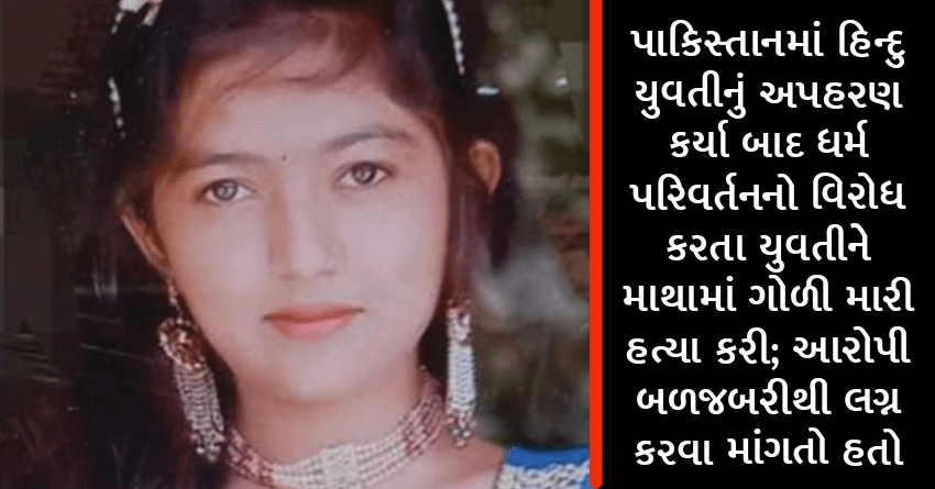 પાકિસ્તાનમાં હિન્દુ યુવતીનું અપહરણ કર્યા બાદ ધર્મ પરિવર્તનનો વિરોધ કરતા યુવતીને માથામાં ગોળી મારી હત્યા કરી; આરોપી બળજબરીથી લગ્ન કરવા માંગતો હતો