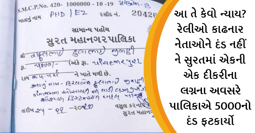 આ તે કેવો ન્યાય? રેલીઓ કાઢનાર નેતાઓને દંડ નહીં ને સુરતમાં એકની એક દીકરીના લગ્નના અવસરે પાલિકાએ 5000નો દંડ ફટકાર્યો