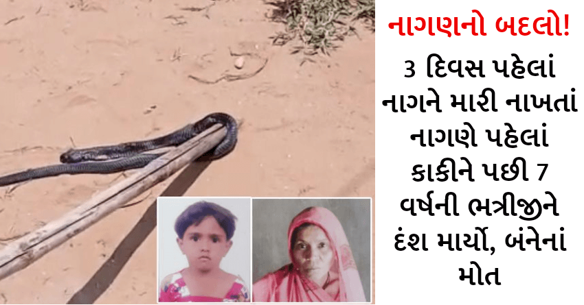 મૃતક સુરેખાબેનના જેઠ રણજિતસિંહની 7 વર્ષની દીકરી અનુ ઘર પાસે રમી રહી હતી. આ સમયે ઘરની સીડી પાસે તૂટેલા ભાગમાં બેસી રહેલો નાગણે તેને પણ ડાબા પગની આંગળીએ દંશ માર્યો હતો. તેની તબિયત લથડતાં બાળકીને પણ દવાખાને લઈ જવાઈ હતી, પરંતુ તેને બચાવી શકાઈ ન હતી. એક સાથે બે લોકોનાં મોતને પગલે રોષે ભરાયેલા લોકોએ નાગને શોધીને મારી નાખ્યો હતો. જેથી ત્રણ દિવસ પહેલાં મારી નખાયેલા નાગનો બદલો લેવા માટે નાગણ આવી હોવાની ચર્ચાઓ ચાલી રહી છે.
