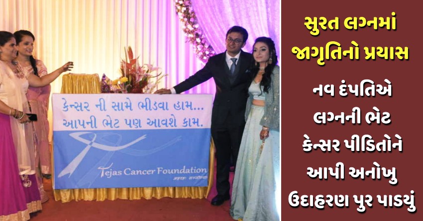 સુરતમાં લગ્નમાં જાગૃતિનો પ્રયાસ: નવ દંપતિએ લગ્નની ભેટ કેન્સર પીડિતોને આપી અનોખુ ઉદાહરણ પુર પાડયું