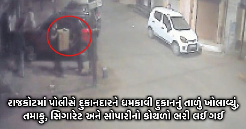 રાજકોટમાં પોલીસે દુકાનદારને ધમકાવી દુકાનનું તાળું ખોલાવ્યું, તમાકુ, સિગારેટ અને સોપારીનો કોથળો ભરી લઈ ગઈ