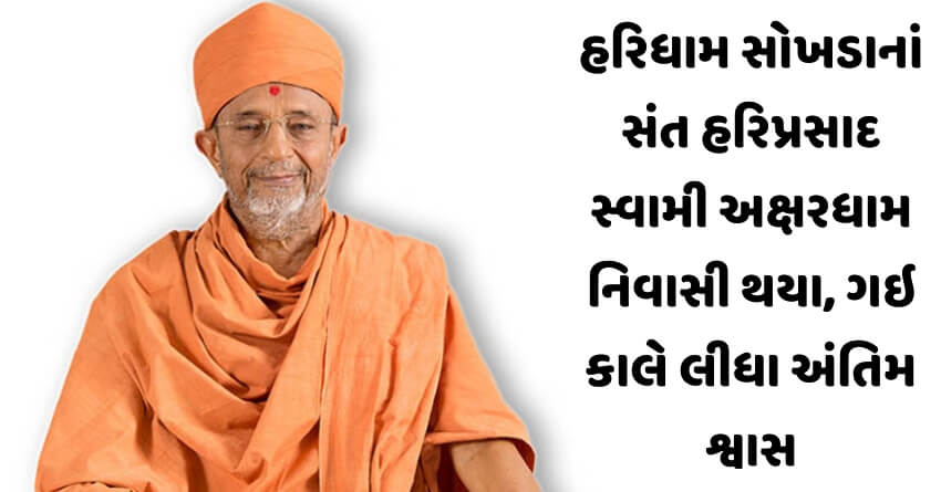 હરિધામ સોખડાનાં સંત હરિપ્રસાદ સ્વામી અક્ષરધામ નિવાસી થયા, ગઇ કાલે લીધા અંતિમ શ્વાસ