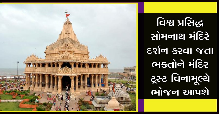 વિશ્વ પ્રસિદ્ધ સોમનાથ મંદિરે દર્શન કરવા જતા ભક્તોને મંદિર ટ્રસ્ટ વિનામૂલ્યે ભોજન આપશે