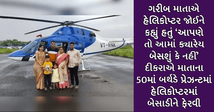 ગરીબ માતાએ હેલિકોપ્ટર જોઈને કહ્યું હતું ‘આપણે તો આમાં ક્યારેય બેસશું કે નહીં’ દીકરાએ માતાના 50માં બર્થડે પ્રેઝન્ટમાં હેલિકોપ્ટરમાં બેસાડીને ફેરવી