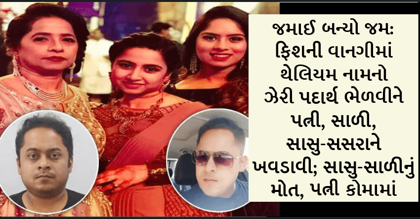 જમાઈ બન્યો જમ: ફિશની વાનગીમાં થેલિયમ નામનો ઝેરી પદાર્થ ભેળવીને પત્ની-સાળી-સાસુ-સસરાને ખવડાવી; સાસુ-સાળીનું મોત, પત્ની કોમામાં