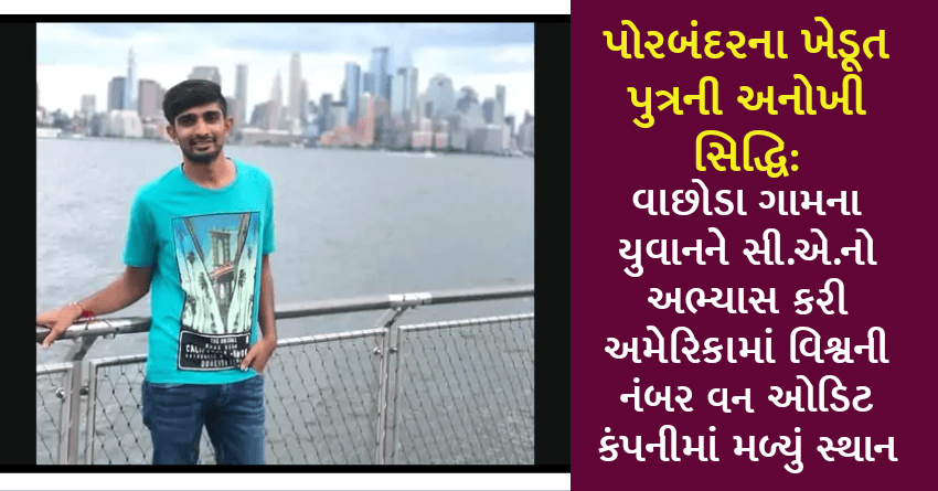 પોરબંદરના ખેડૂત પુત્રની અનોખી સિદ્ધિ: વાછોડા ગામના યુવાનને સી.એ.નો અભ્યાસ કરી અમેરિકામાં વિશ્વની નંબર વન ઓડિટ કંપનીમાં મળ્યું સ્થાન