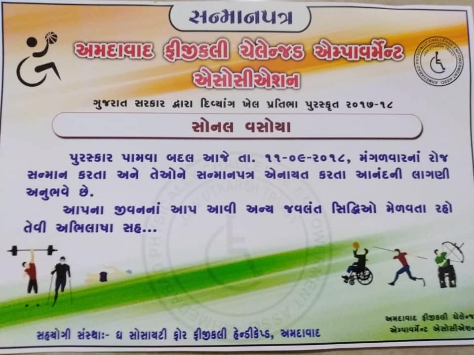 આનંદ એ વાતનો છે કે આ સોનલ આજે ભારત વતી બાવીસ ફેબ્રુઆરી ૨૦૧૯ના રોજ દુબઇ ખાતે જે દિવ્યાંગ રમતવીરો હોય એ રમતમાં વિશ્વના ખેલાડીઓ સામે ૨મવા જઈ રહી છે. આ માટે આપણે સોનલને ખૂબ શુભેરછા અને best Luck કહી એમની જે મનોકામના છે એ માટે શુભેરછા પાઠવીએ.