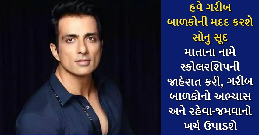 હવે ગરીબ બાળકોની મદદ કરશે સોનુ સૂદ, માતાના નામે સ્કોલરશિપની જાહેરાત કરી, ગરીબ બાળકોનો અભ્યાસ અને રહેવા-જમવાનો ખર્ચ ઉપાડશે