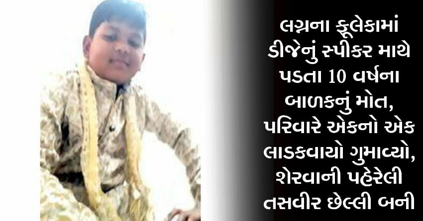 લગ્નના ફૂલેકામાં ડીજેનું સ્પીકર માથે પડતા 10 વર્ષના બાળકનું મોત, પરિવારે એકનો એક લાડકવાયો ગુમાવ્યો, શેરવાની પહેરેલી તસવીર છેલ્લી બની