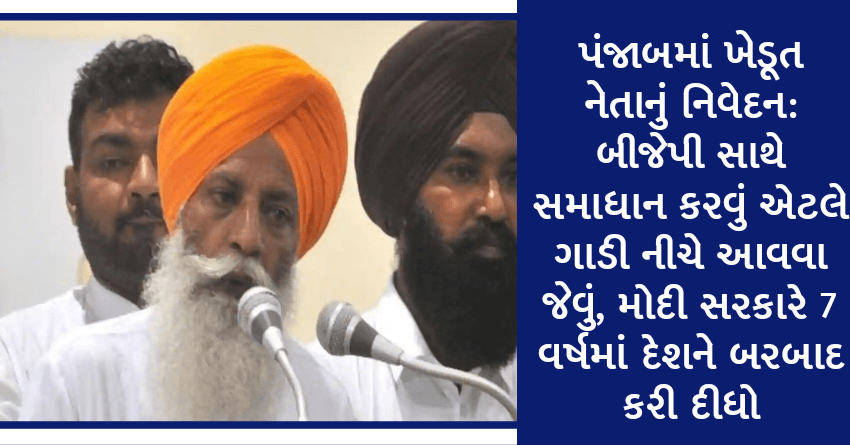 પંજાબમાં ખેડૂત નેતાનું નિવેદન: બીજેપી સાથે સમાધાન કરવું એટલે ગાડી નીચે આવવા જેવું, મોદી સરકારે 7 વર્ષમાં દેશને બરબાદ કરી દીધો