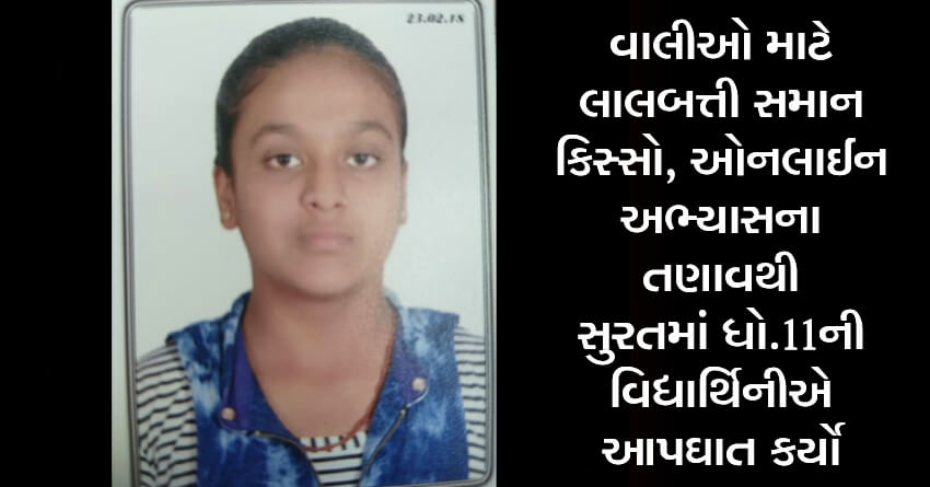 વાલીઓ માટે લાલબત્તી સમાન કિસ્સો, ઓનલાઈન અભ્યાસના તણાવથી સુરતમાં ધો.11ની વિદ્યાર્થિનીએ આપઘાત કર્યો