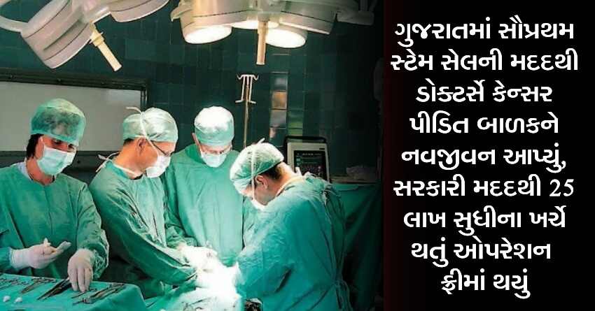 ગુજરાતમાં સૌપ્રથમ સ્ટેમ સેલની મદદથી ડોક્ટર્સે કેન્સર પીડિત બાળકને નવજીવન આપ્યું, સરકારી મદદથી 25 લાખ સુધીના ખર્ચે થતું ઓપરેશન ફ્રીમાં થયું