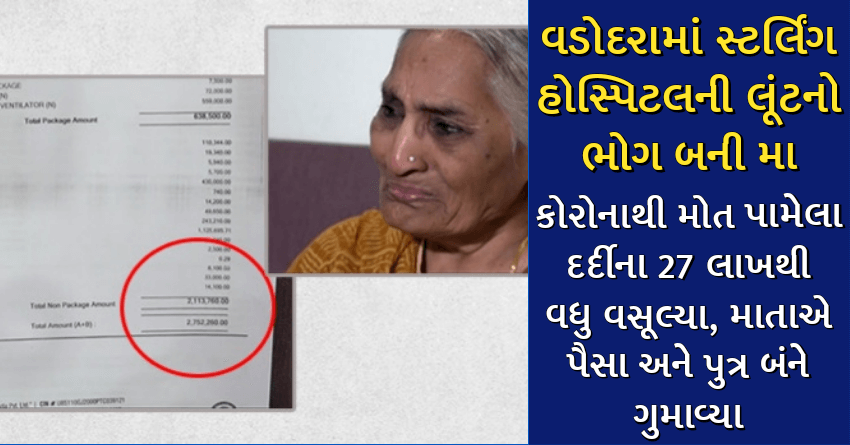 વડોદરામાં સ્ટર્લિંગ હોસ્પિટલની લૂંટનો ભોગ બની મા, કોરોનાથી મોત પામેલા દર્દીના 27 લાખથી વધુ વસૂલ્યા, માતાએ પૈસા અને પુત્ર બંને ગુમાવ્યા