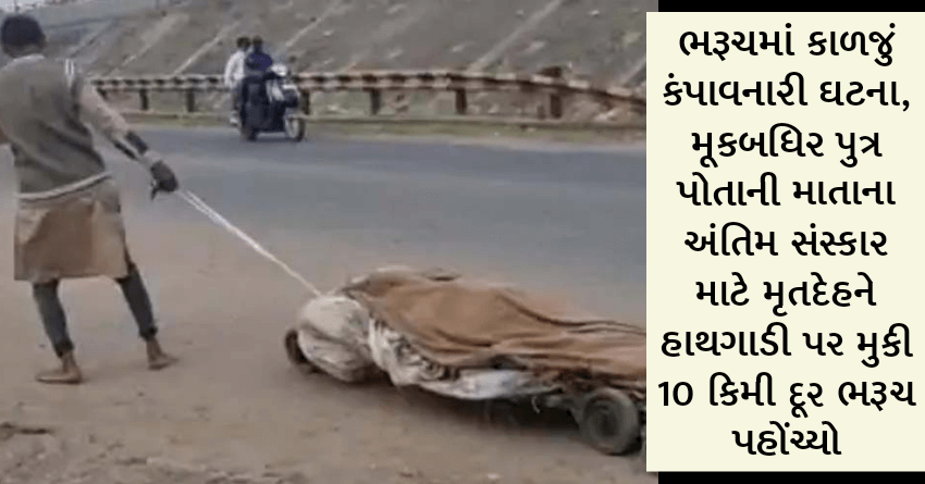 ભરૂચમાં કાળજું કંપાવનારી ઘટના, મૂકબધિર પુત્ર પોતાની માતાના અંતિમ સંસ્કાર માટે મૃતદેહને હાથગાડી પર મુકી 10 કિમી દૂર ભરૂચ પહોંચ્યો