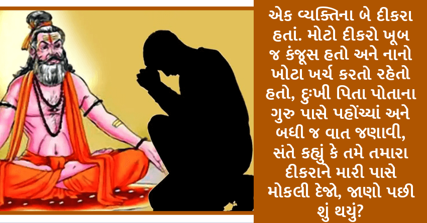 એક વ્યક્તિના બે દીકરા હતાં. મોટો દીકરો ખૂબ જ કંજૂસ હતો અને નાનો ખોટા ખર્ચ કરતો રહેતો હતો, દુઃખી પિતા પોતાના ગુરુ પાસે પહોંચ્યાં અને બધી જ વાત જણાવી, સંતે કહ્યું કે તમે તમારા દીકરાને મારી પાસે મોકલી દેજો, જાણો પછી શું થયું?