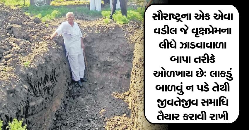 સૌરાષ્ટ્રના એક એવા વડીલ જે વૃક્ષપ્રેમના લીધે ઝાડવાવાળા બાપા તરીકે ઓળખાય છે: લાકડું બાળવું ન પડે તેથી જીવતેજીવ સમાધિ તૈયાર કરાવી રાખી છે.