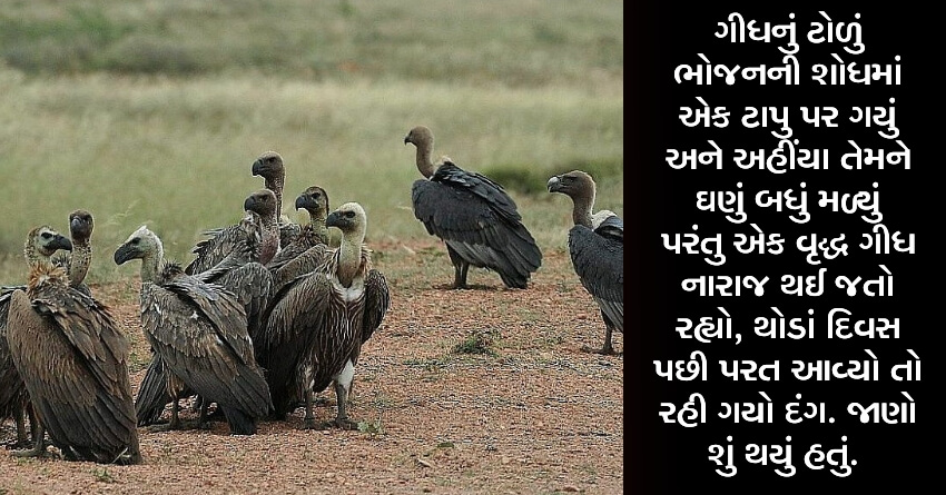 ગીધનું ટોળું ભોજનની શોધમાં એક ટાપુ પર ગયું અને અહીંયા તેમને ઘણું બધું મળ્યું પરંતુ એક વૃદ્ધ ગીધ નારાજ થઈ જતો રહ્યો, થોડાં દિવસ પછી પરત આવ્યો તો રહી ગયો દંગ. જાણો શું થયું હતું.