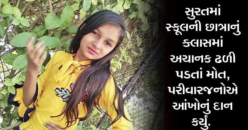 સુરતમાં સ્કૂલની છાત્રાનું ક્લાસમાં અચાનક ઢળી પડતાં મોત, પરીવારજનોએ આંખોનું દાન કર્યું